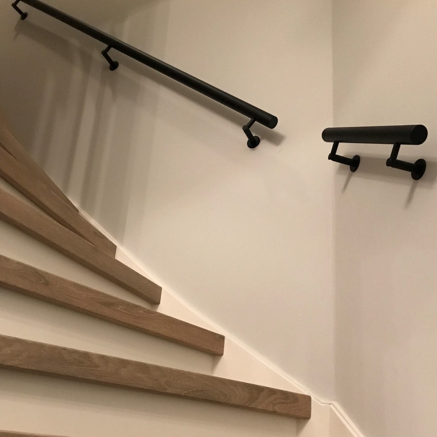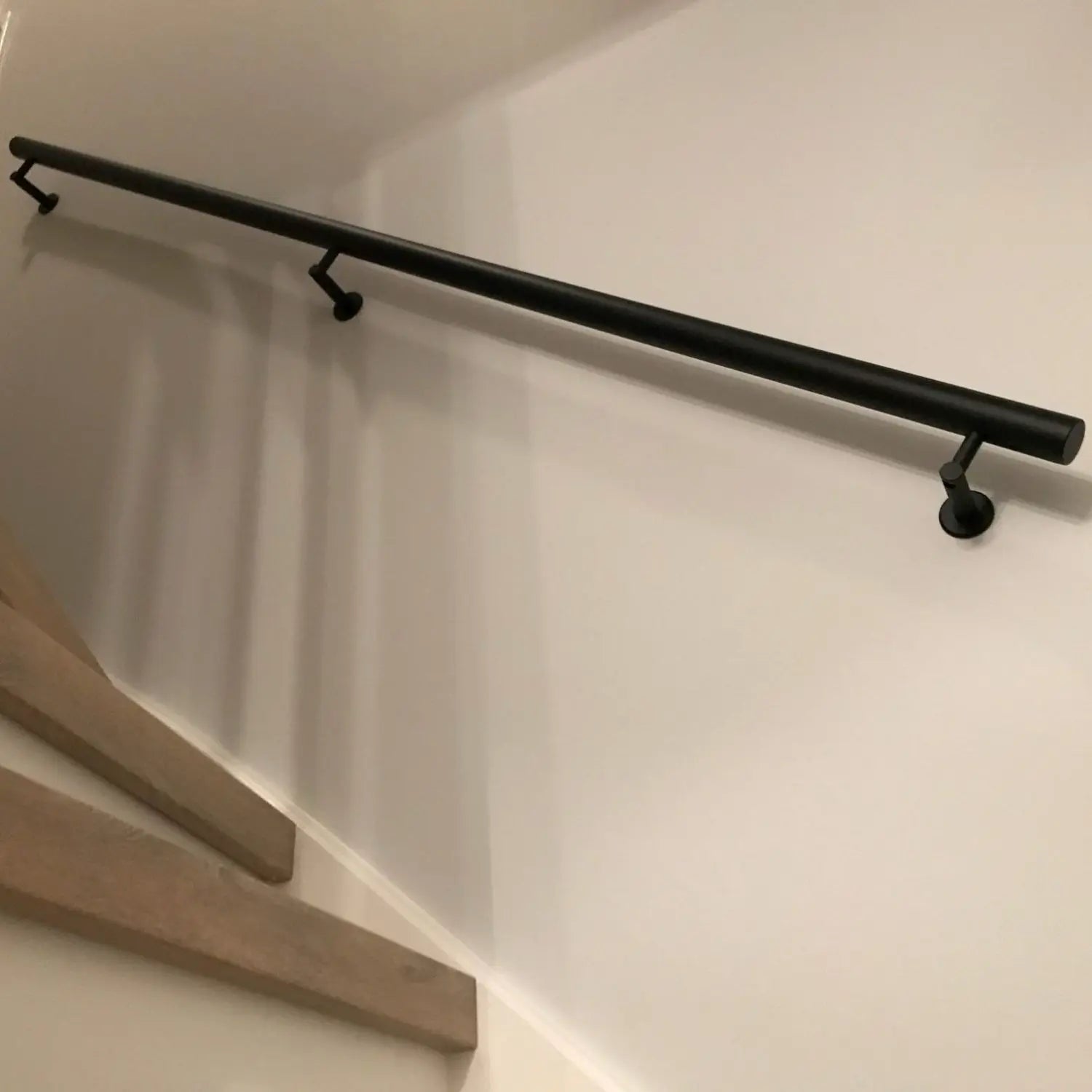 Zwarte poedercoating geeft jouw trapleuning een strakke, matte en slijtvaste afwerking met een prachtige fijne structuur. De kleur oogt modern, luxe en past perfect bij elk interieur met zwarte accenten. Iedere trapleuning wordt volledigop maat gemaakt, precies in de lengte die jij nodig hebt van kort tot extra lang zodat hij altijd naadloos aansluit op jouw trap.